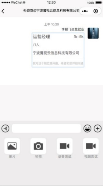 (4)沟通面试与查看简历投递邀请:进入职位详情,点击“沟通面试”,与HR在线沟通,支持拍照、文字、语音、表情和图片发送,发送设计作品或证书请点击图片发送,面试由HR发起,如希望与HR视频面试,请发送语音或文字,邀请HR发起语音或视频面试,HR留言或简历投递邀请将保留在联系人列表中,请及时查看并回复,双选会期间请保持在线状态,以免错过HR发起的面试。