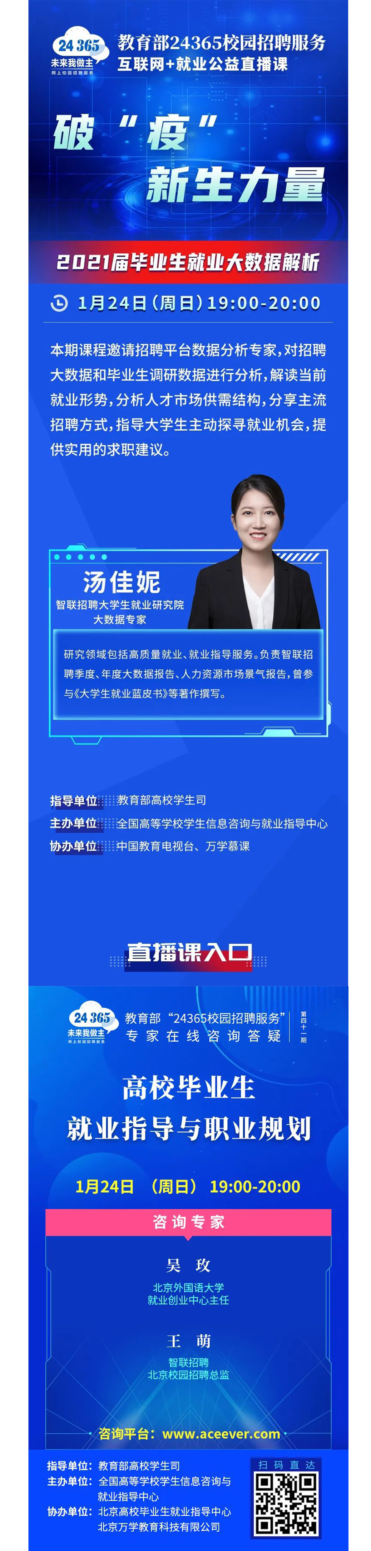 课程预告 | 教育部24365就业公益直播课:破“疫”新生力量——2021届毕业生就业大数据解析